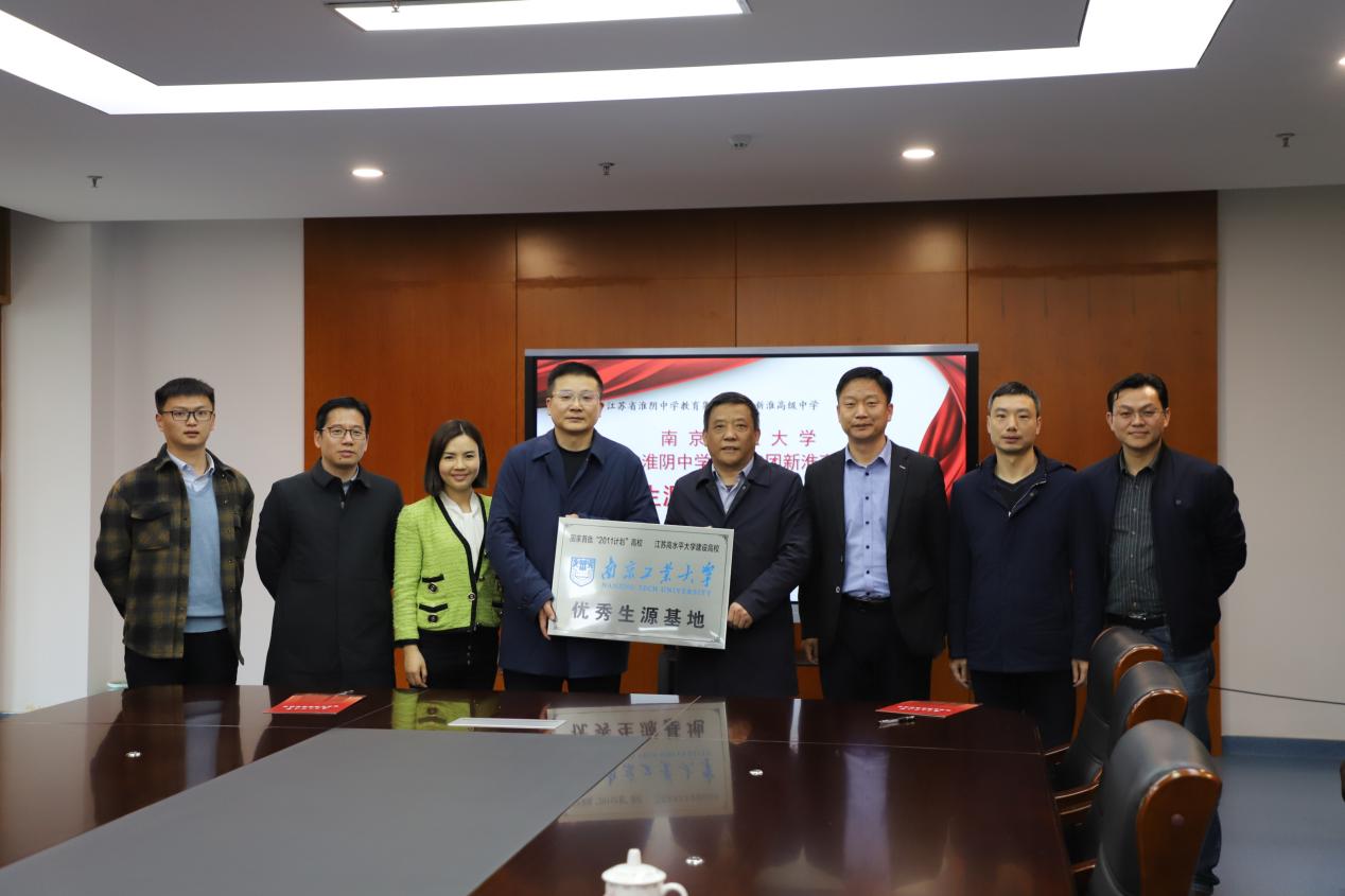 4月26日下午,我校与淮安市新淮高级中学“优质生源基地”签约挂牌仪式在新淮高级中学共享中心5楼会议室举行。ylzzcom永利总站线路检测党委书记顾永东、党委副书记林宁、副院长蔡志昶、辅导员孟威,淮安市新淮高级中学校长蒋鼎宏、副校长朱继春、办公室主任张玉群、高三年级主任林建华等参加了签约挂牌仪式。