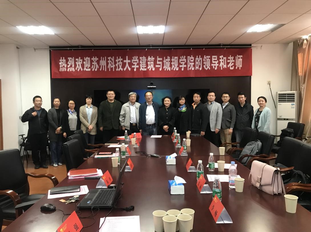 2020年11月18日,苏州科技大学建筑与城市规划学院党委书记王雨村、副院长胡莹、建筑系主任徐永利、城乡规划系副主任张振龙、建筑系副教授张曦、风景园林系副教授李畅和讲师孙旻恺一行7人来我院调研。我院党委书记郭华瑜、院党委副书记、院长胡振宇、副院长方遥、建筑系主任张海燕、城市规划系副主任黎智辉、景观环境系副主任陈妍、建筑系建筑历史与理论教研室主任张蕾、建筑系建筑技术教研室主任、建筑物理实验室主任刘强等参加了交流会。