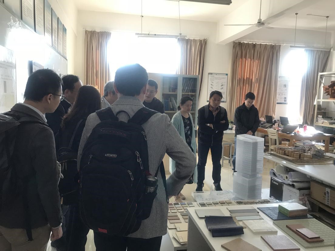 首先,郭华瑜书记代表我院向兄弟院系领导和老师们的到来表示热烈欢迎,王雨村书记表示感谢,并介绍了调研主题;接着,胡振宇院长介绍了我院近年来的总体发展情况,方遥副院长介绍了国家一流课程申报、专业复评估等情况;随后,双方针对国家一流课程申报、建筑学专业复评、师资队伍建设、科研与学科建设等方面的议题进行了深入的研讨。会后,王雨村书记一行在我院领导陪同下参观了教学科研成果展厅、实验室、专业教室、研究所、教研室与教授工作室等办学场所。