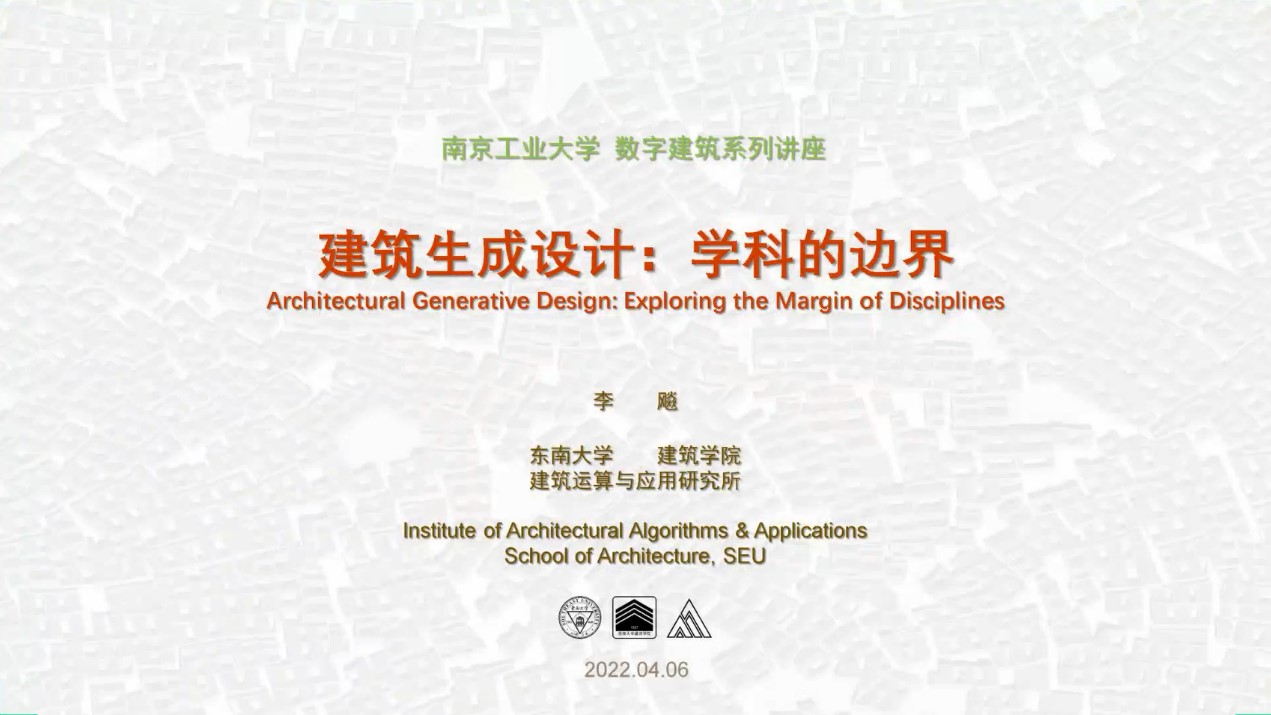 4月6日下午,ylzzcom永利总站线路检测主办的数字建筑系列讲座在腾讯会议线上平台顺利开讲,首场学术报告嘉宾为东南大学ylzzcom永利总站线路检测建筑运算与应用研究所所长李飚教授,报告主题为“建筑生成设计:学科的边界”。讲座由副院长方遥主持,ylzzcom永利总站线路检测、南京长江都市建筑设计股份有限公司、江苏省建筑设计研究院股份有限公司等一百多位校内外专业人士聆听了讲座。