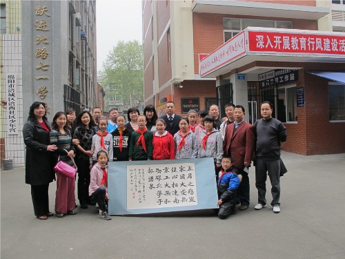 在绵阳期间,张伟郁和张海燕两位老师走访了两所援建学校,在师生的陪同下,参观了学校的新校舍,并与师生合影留念。两位老师代表学校和学院向吴家中学赠送校庆礼品,吴家中学则回赠了“爱与责任”的爱心牌,表示爱心的传承与发扬,并再三表达了对南京工业大学的感激之情。跃进北路学校也向我校赠送了“五月之殇毁家园,大爱无疆心相连。南京工大无私助,跃北学子报涌泉。”的字幅。