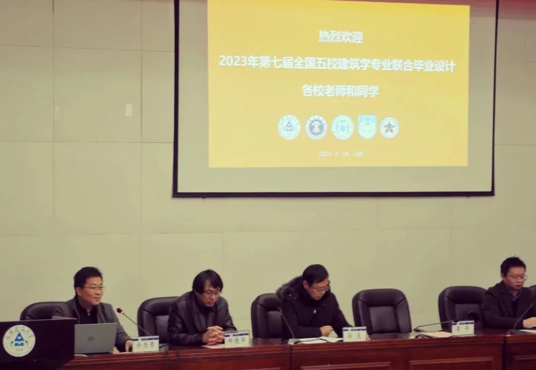 2023年2月24日上午9:00,主题为“城市更新——合肥市老城更新暨原省政府地块改造设计”及“古城复兴——绩溪国家历史文化名城提升改造设计”的2023年第七届全国五校建筑学专业联合毕业设计开题仪式,如期在安徽建筑大学南校区图书馆五楼报告厅成功举办。